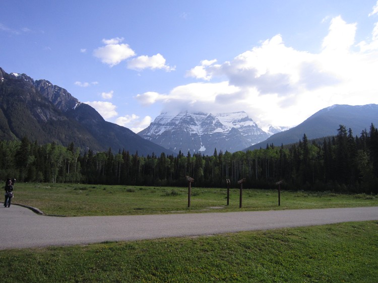 導遊帶我們去看加拿大洛磯山脈中最高的山峰,可惜濃雲圍繞山頂,難以見到最高峰。