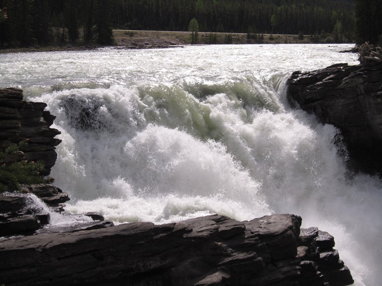 急流湧入斷崖,形成瀑布、聽說這是洛磯山脈中最闊的瀑布了。