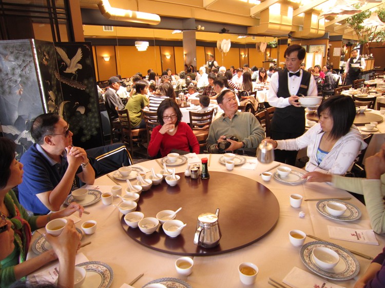 我們在一間中餐館用餐,天花板上掛著古色古香的掛燈。