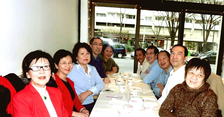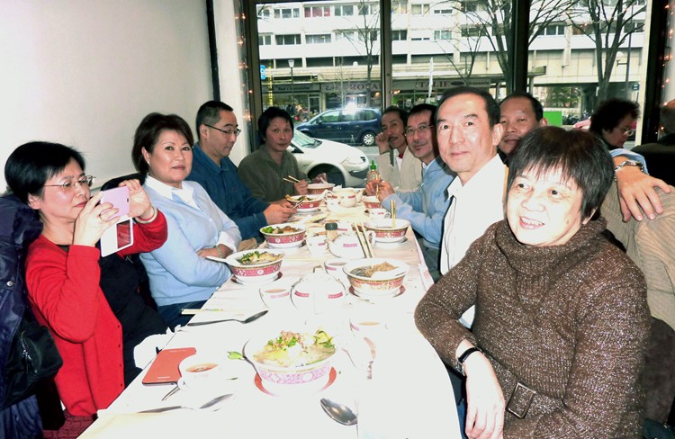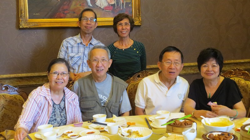 同窗與配偶,紛紛趕去與74年班校友阮自強和黃國華伉儷及女兒一起歡聚。中