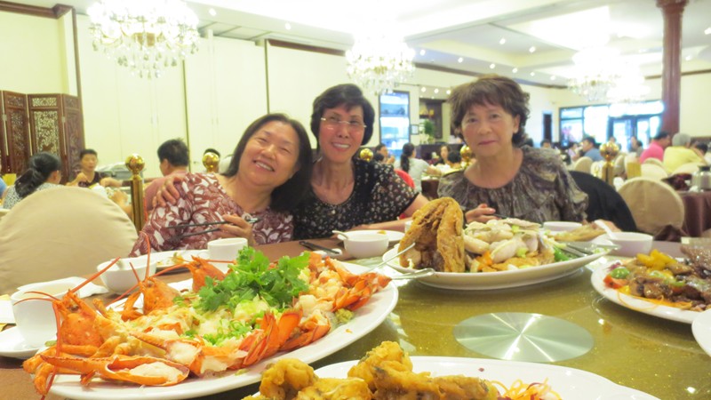 八月二号,何春馨和余小玲(博愛中英越,陳淑萍(69)大學同学),清早就去"凱龍船"排隊等位,劉慧虹(67)真的要拍照留念,没她倆,真的無法嘗到那么多款式的精美点心。