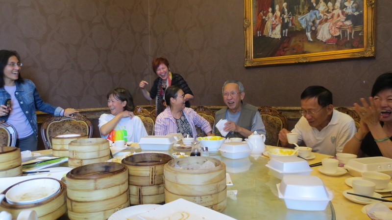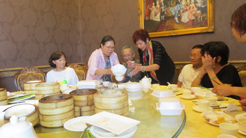 李麗芳(75)因有要事不能出席,這是她第二次臨時取消,上次是台灣之旅,可惜!願下次的聚會能見到她!滿枱的美味點心,猜猜看,十七位老師同學們,可以吃完嗎?