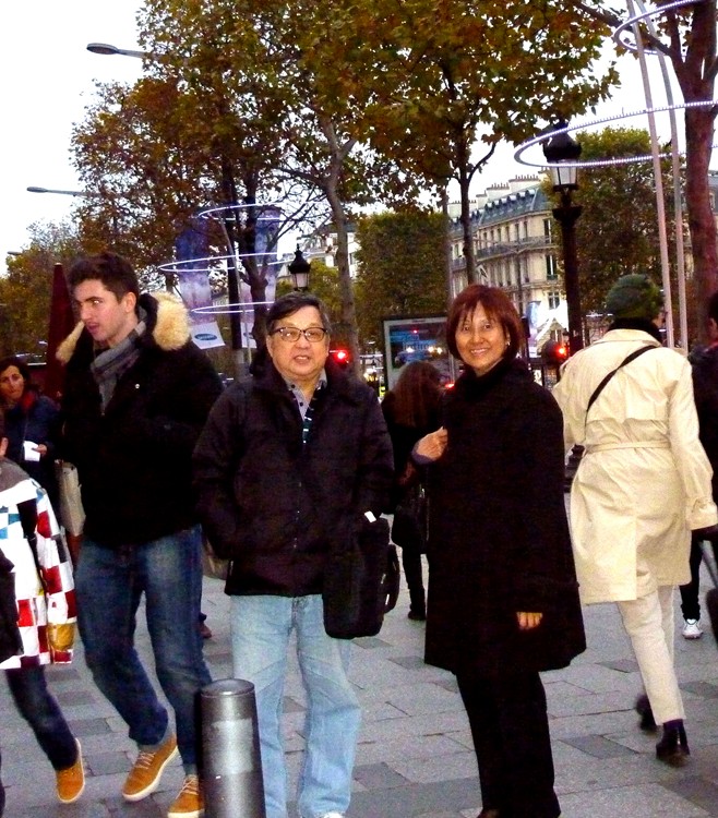 無論春夏秋冬,洪佳同學每逢假期,一有機會就從香港飛到德國斯圖加特Stuttgart ,探望年邁的母親,偶爾也會乘坐三個多小時火車,前往巴黎看望姐姐,並順道與班上同窗相會。11月23日中午,他剛從德國抵達巴黎東站,還未到姐姐家,就被同學接走一起聚餐,然後被引領到世界最美麗的香榭麗舍大道逛遊,欣賞已經亮起別樹一幟的聖誕街燈,體驗花都慶祝年終歲晚來臨的熱鬧氣氛。洪佳雖然多次到訪巴黎,然而,這卻是第一次在這條康莊大道上留下足跡。