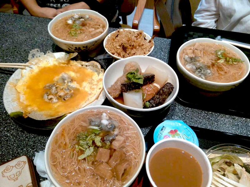 蚵仔煎,油飯,蚵仔大腸米線,甜不辣!