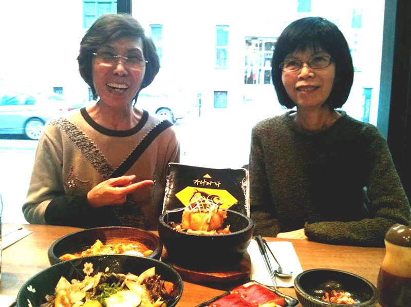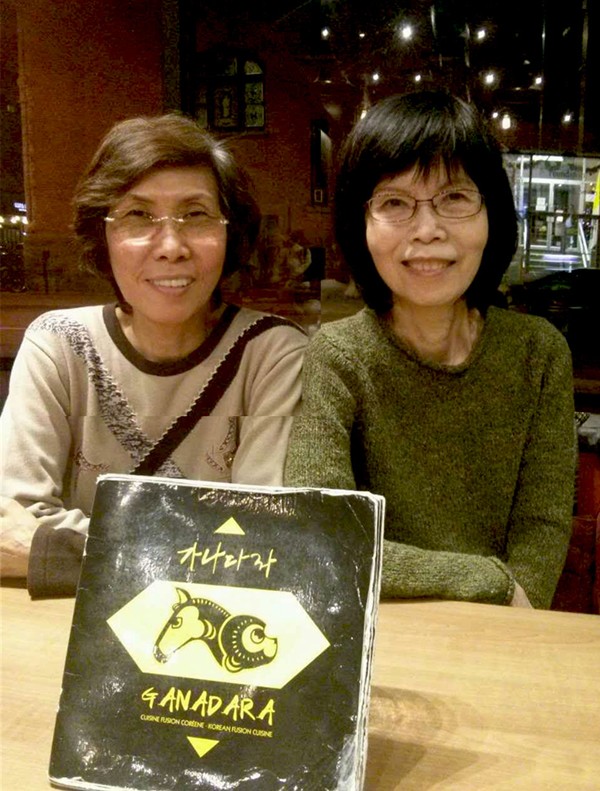 每次盧業芬(右)到訪滿地可都與潘藍茵飽嚐美食,2015年12月7日在朋友介紹下,光顧了這家要排隊才可以入座的韓國餐廳,並且不知不覺在餐館裡閒聊了足足三小時。