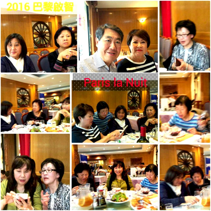 6月4日晚上,除了葉熙甯因出國工作缺席之外,所有法國69年班同學(左起第一排)黃美娟、陳淑萍、梁少英(來自澳洲)、林露瑩、楊惠馨與夫婿Gilbert
