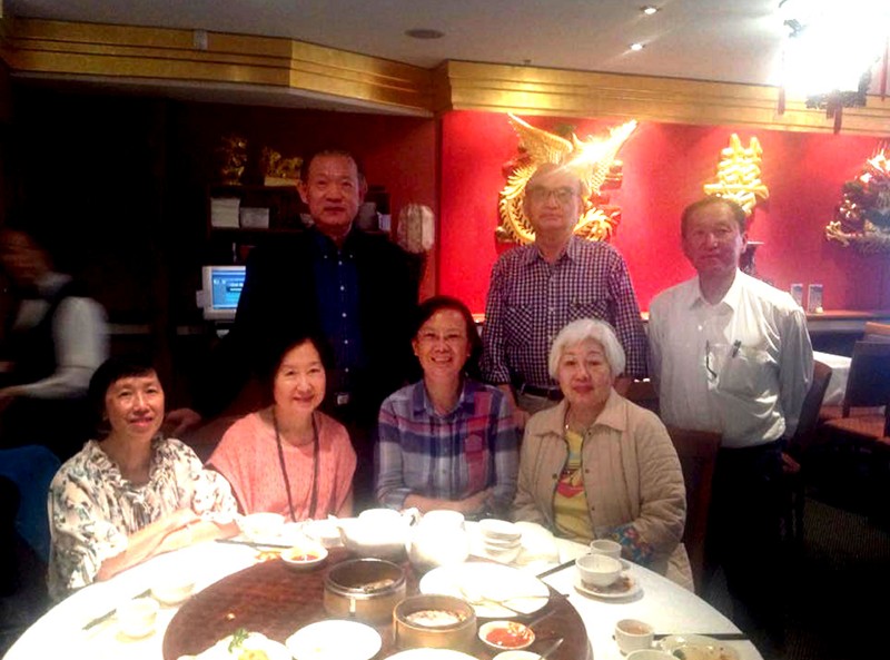 素有王子稱號的曾錦賢同學從美國重臨香江,2015年11月29日與香港同學在沙田聚餐。王子曾錦賢(左站)人緣好,能夠獲得(左起坐)劉桂寧,曾慧珍,曾慧珍先生鍾洪濟,洪佳及黃克鴻全體香港同學賞面,一起敘舊。