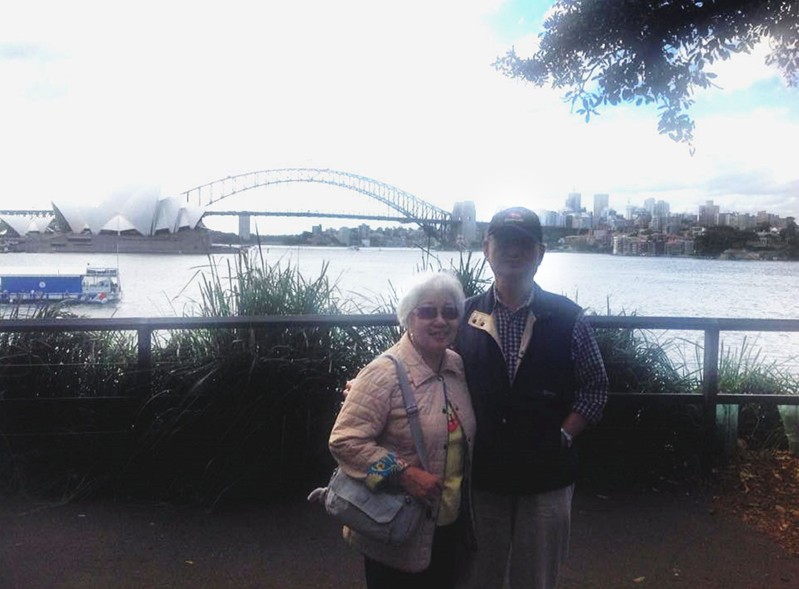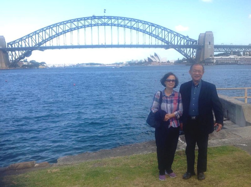 孫人先和夫婿周永嘉親臨其境,觀賞巍峨雄偉,世界最寬大的悉尼海港鐵橋。