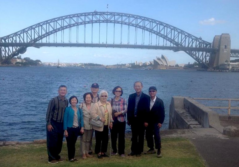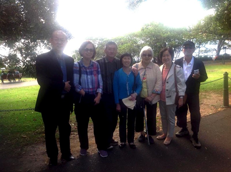 孫人先同學與夫婿周永嘉,大哥和大嫂,趁著參加臺大校友舉辦紐西蘭郵輪聚會活動的機會,2015年12月3日一行從臺北先行匆匆到訪澳洲大城悉尼的時候,獲得僑居當地的啟智中學同窗梁少英,梁少英丈夫張惠民,顏秀慧和陳敬國的熱情接待,並在同學們引領下,觀賞悉尼海港美麗的風光。