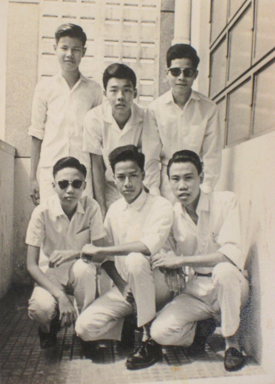69年文科班六位男同學在啟智母校課室外的合照 (1966-1967) 第一排:譚紹銘、鄧鴻章、蘇耀南 第二排:郭世堤、張偉華、馬錦華