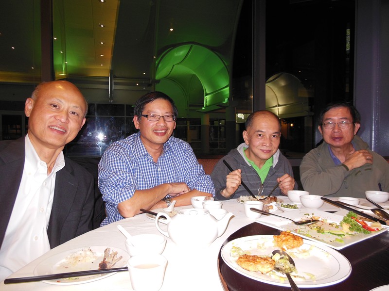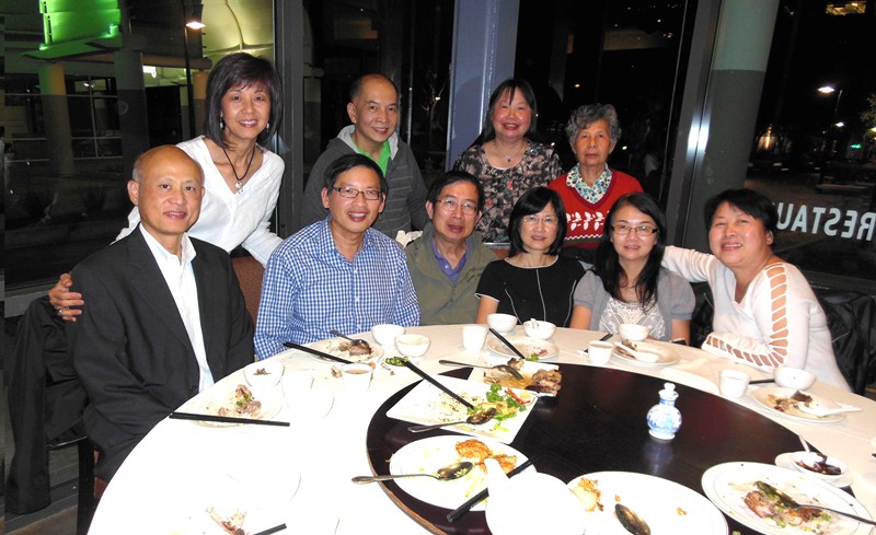 Milpitas 餐館與其他同學餐聚。文科班有畢銀友、李文羌、陳年益。理科班有 "Mr. CEO"(吳清輝) 與太太