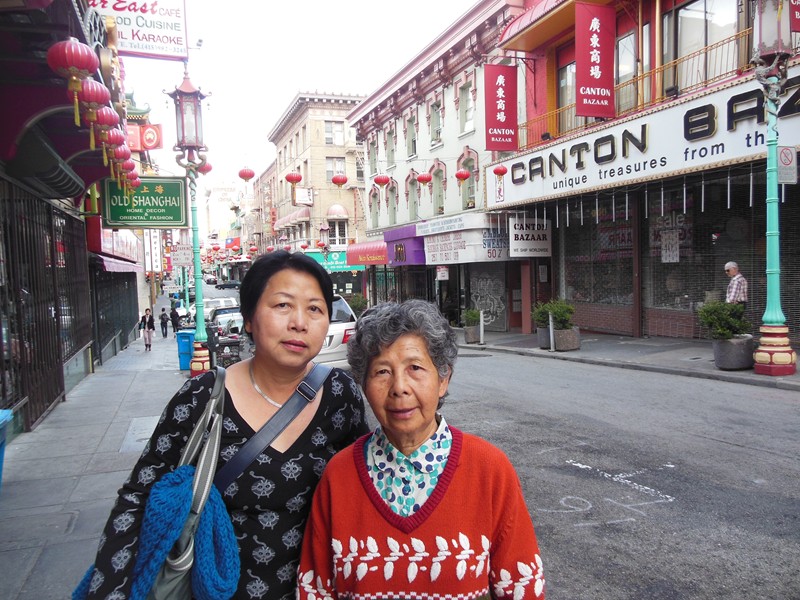 柯錦珍與友人在市區街頭合影