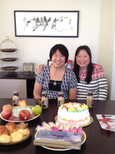 趁著 72L班上的余錦霞同學 (左一)來訪灣區, 我們在李文羌家聚會。