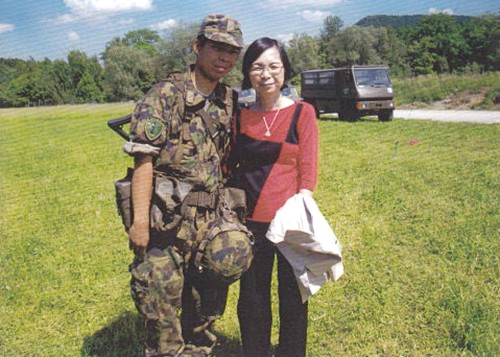 #32 林湄湄 and her son Ken Tsan at his graduation ceremony for his Military training