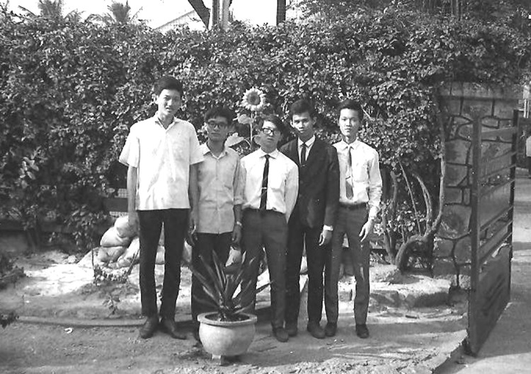 1972年羅霖基得到南越政府批准到美國留學,幾位好友為他送行: 石亦磊(花名石仔, 68理科)、老來健(69理科)、曾憲海(69理科)、羅霖基(68理科)、王永健(69理科)羅楚輝(永隆同學, 今在Australia), 黃其強(68理科)、方永祥(69理科)