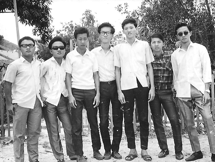 1972年羅霖基得到南越政府批准到美國留學,幾位好友為他送行:XXX、老來健(69理科)、曾憲海(69理科)、羅霖基(68理科)、王永健(69理科)、XXX、XXX、方永祥(69理科)