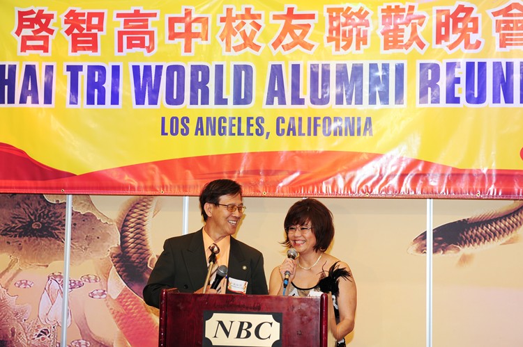 #73 兩位非常勝任的晚會金牌司儀:姚福照(72年理科)、廖建珍(76年),談笑風生。