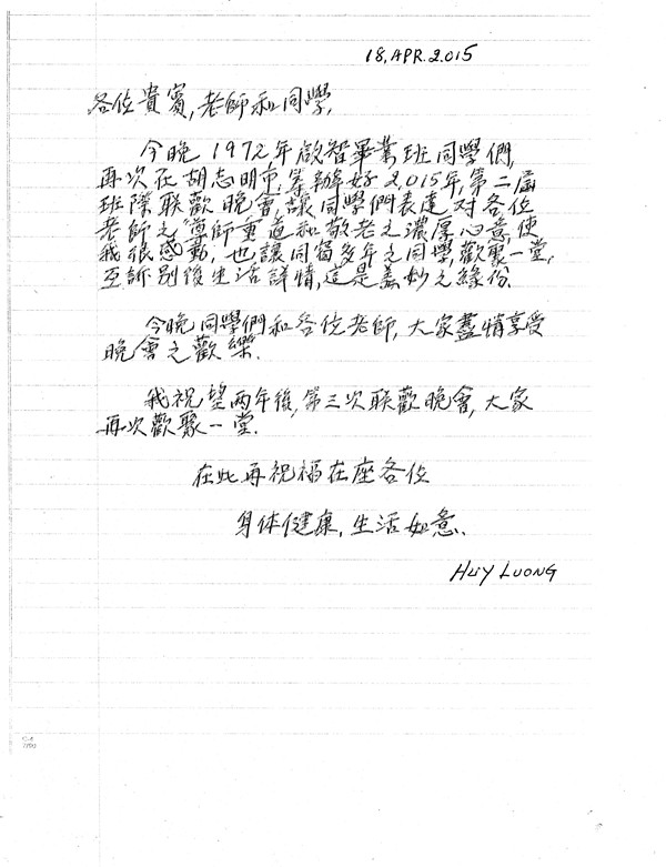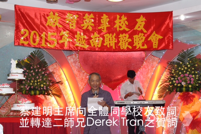 2015年四月中旬,啓智海外校友與梁景輝老師伉儷雲集越南舉辦聯歡晚會,以下是72年文科蔡建明校友寄來的相片。