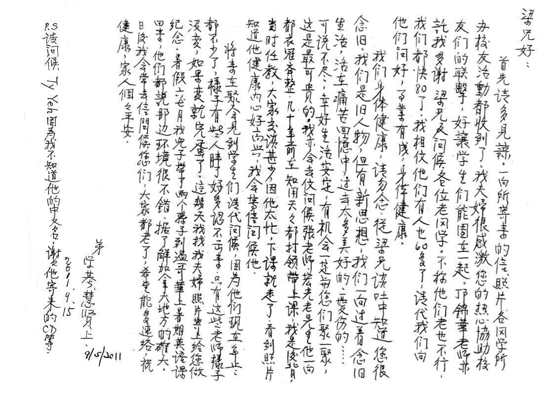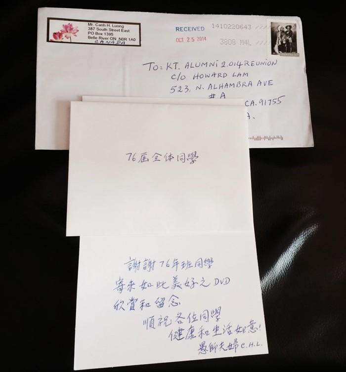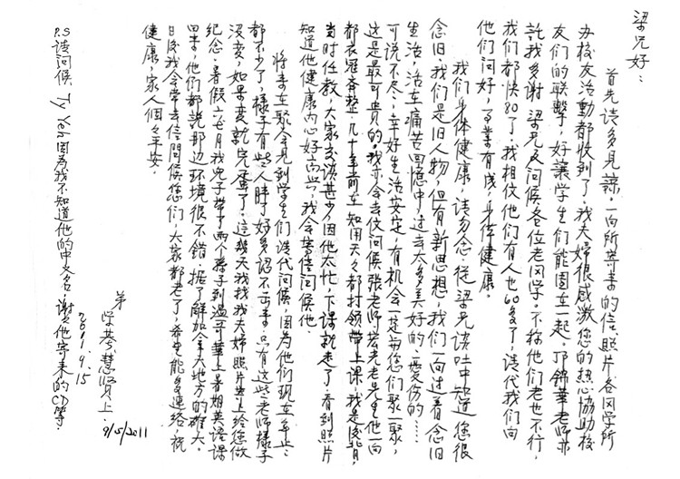 以上是梁景輝老師寄給主辦2014年聯歡晚會籌備組(76年班)的感謝信